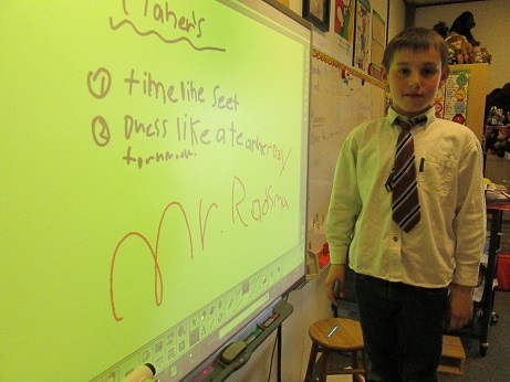Miss Lynden gives the students their journal topic.”What you do if you were the teacher for a day?”